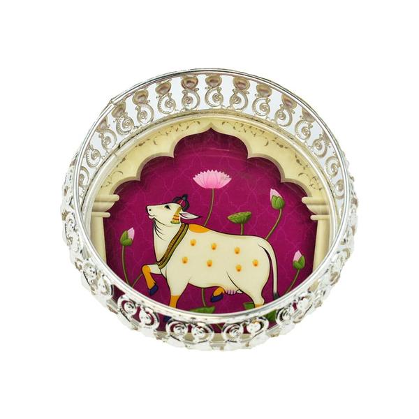Silver Mina Tray - Painted with Pichwai Art