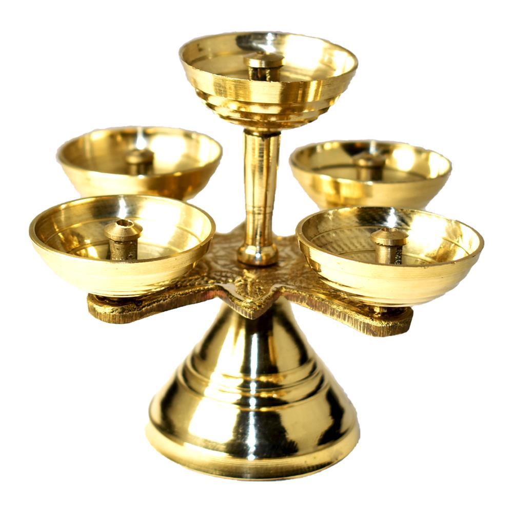 The Brass 5 Wick Oil Lamp is a traditional and elegant pooja essential, crafted from high-quality brass for durability and long-lasting shine. Designed with five evenly spaced oil cups, this lamp symbolizes the five elements and is ideal for performing aarti and daily religious rituals.