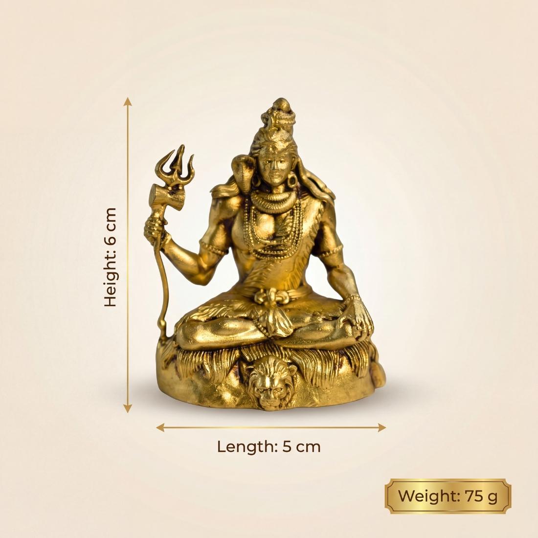 The Hinduportal Miniature Brass Meditating Shiva is designed for those who seek peace and focus in their sacred spaces. Despite its compact 6 cm height, the idol features remarkable detailing—from the traditional Trishul (Trident) and Damru to the intricately sculpted lion-skin base.
