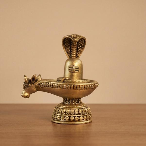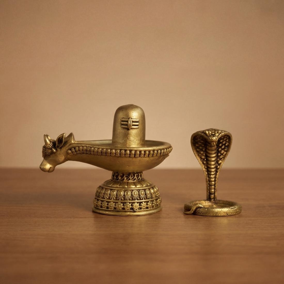 In Hindu worship, the Shiva Lingam represents Lord Shiva’s cosmic energy and infinite consciousness, while Nandi, Shiva’s divine vehicle, signifies devotion, strength, and unwavering faith. The cobra hood above the lingam adds a powerful spiritual symbol of protection and divine authority. Crafted from durable solid brass, this idol is perfect for daily abhishek, Mahashivratri rituals, and devotional altar placement.