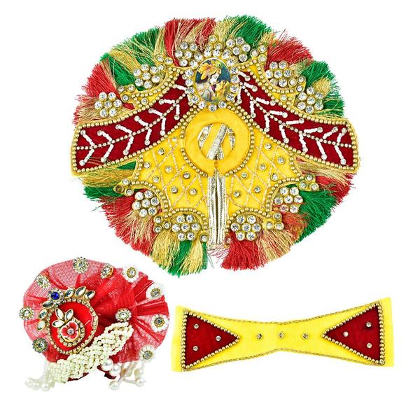 Dress in Yellow, Red and Green Color with Red Pagdi | Beautiful Laddu Gopal Dress/Laddu Gopal Designer Dress/Lord Krishna size 6 Inches