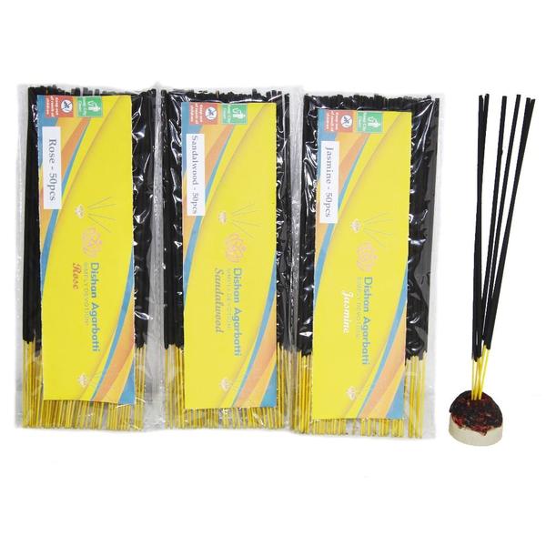 Incense sticks play an important role in Indian culture, and they are used during prayers and meditation to enjoy the worship time and attain peace of mind and soul. Agarbatti's iconic incense sticks is a classic product that symbolises love, devotion, and prosperity. Three energising aromas are used in a pack of Three in One Agarbatti: Rose for loyalty and commitment, Jasmine for wealth, and Sandalwood for affection. Incense sticks are formulated from the utmost concentrated scent, which has been specially developed to create a long-lasting and enthralling aroma that will definitely enhance a room's aura. With the intoxicating scent, it will create the ideal environment for prayer and meditation. Enjoy the soothing, relaxing scent, as well as the optimistic atmosphere it creates, for an uninterrupted communication with God.