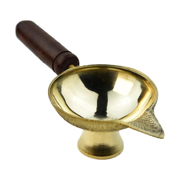 The Kapoor Aarti Diya with Wooden Handle is a beautifully crafted brass lamp specially designed for burning camphor (kapoor) during puja and aarti rituals. Made from premium quality brass, it ensures durability, shine, and a traditional look. The sturdy wooden handle provides a safe and comfortable grip, protecting your hand from heat while performing aarti. Perfect for daily prayers, temple use, and festive occasions, this diya adds a divine touch to your worship rituals.