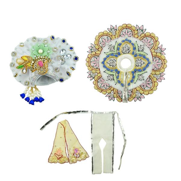 Laddu Gopal Dress with Pagri And Choli, Patka for Sharad Purnima | White Dress Laddu Gopal ji White Dress, Laddu Gopal, Dress Size: 6 inch)