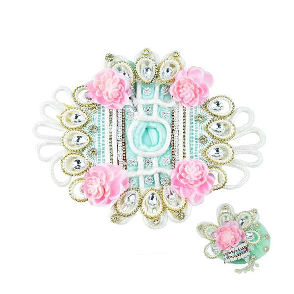 Laddu Gopal Handmade Heavy Work Dress With Pagdi |Laddo Gopal Dress |kanha Ji Dress| Sea Green With Pink Flower Size 6 Inches|