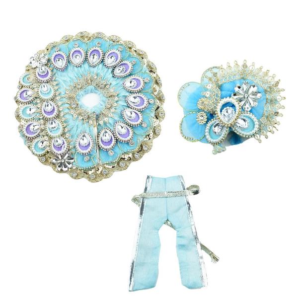 Laddu Gopal Heavy Janamashtmi Sky Blue Poshak with Pagdi, Patka l Ladoo Gopal Dress l Bal Gopal l Kanha Ji Thakur Ji Dress (Size 8 inch)