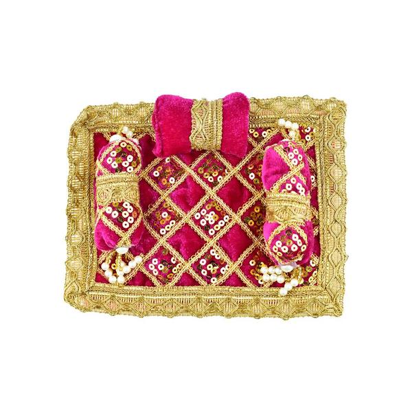 Laddu Gopal Pink Velvet And Golden Work Bedding Set Size 8 Inches By 6 Inches