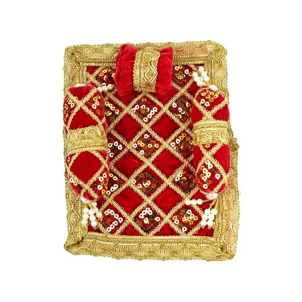 Laddu Gopal Red Velvet And Golden Work Bedding Set Size 8 inches by 6 inches