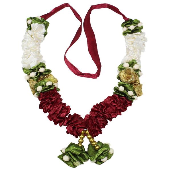 Mala/ Garland White & Maroon with artificial Flowers- for God/ Idol/ Puja Decor/ Festival/ Photo frame- Pack of 1- Length 22cm/8.6inches