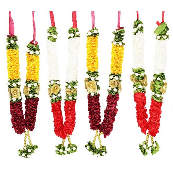 As the real fresh flowers are edible, we can't decorate our gods with delicate garlands made with real flowers. So we have to go through the trouble of altering and maintaining them daily. But the solution is here, Hindu Portal is presenting beautiful handcrafted Garland / Mala made of good quality artificial flowers,colorful beads, fabrics, Satin Cloth etc for not only your god but also multi purpose uses. The garland can be used for your idols and photos of gods and your missed and loved departed souls. You can also use it as a home decor purpose in any festivals or occasions.  The garlands come with vibrant colours, good quality finishing which look absolutely premium and turn your idols and photo frames very attractive. They are very handy and easy to clean. All you need to do is, dust them off with cloth.