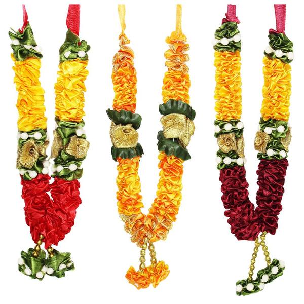 As the real fresh flowers are edible, we can't decorate our gods with delicate garlands made with real flowers. So we have to go through the trouble of altering and maintaining them daily. But the solution is here, Hindu Portal is presenting beautiful handcrafted Garland / Mala made of good quality artificial flowers,colorful beads, fabrics, Satin Cloth etc for not only your god but also multi purpose uses. The garland can be used for your idols and photos of gods and your missed and loved departed souls. You can also use it as a home decor purpose in any festivals or occasions. The garlands come with vibrant colours, good quality finishing which look absolutely premium and turn your idols and photo frames very attractive. They are very handy and easy to clean. All you need to do is, dust them off with cloth.