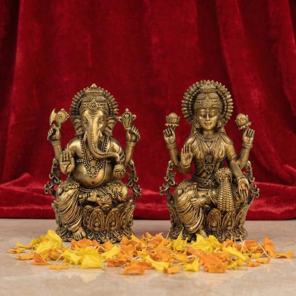 Made from durable solid brass, this handcrafted deity set combines spiritual significance with timeless decorative appeal. Goddess Lakshmi represents prosperity, abundance, and fortune, while Lord Ganesha is worshipped as the remover of obstacles and the giver of wisdom and success. Together, they are especially auspicious for daily worship, Diwali puja, Lakshmi pujan, business openings, and housewarming ceremonies.