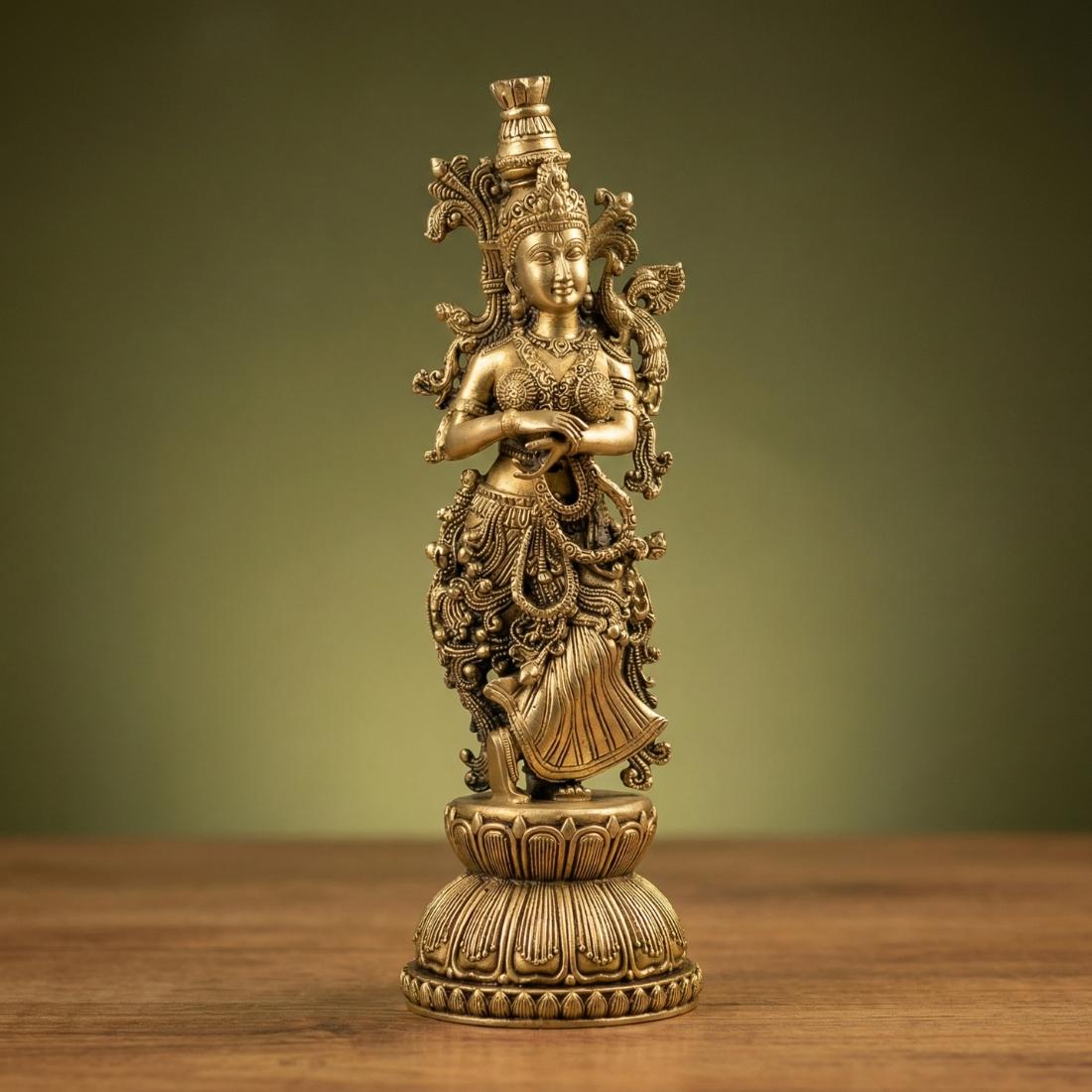 Made from durable solid brass, this handcrafted Radha Krishna statue set combines traditional devotional symbolism with premium artistry. Lord Krishna’s flute posture represents divine attraction and bliss, while Radha symbolizes devotion and unconditional love. The elegant standing design makes this pair ideal for mandir shelves, festive altar decoration, meditation corners, and premium gifting.