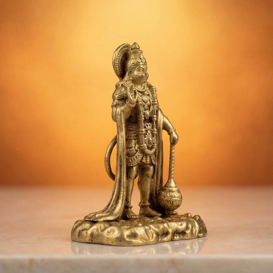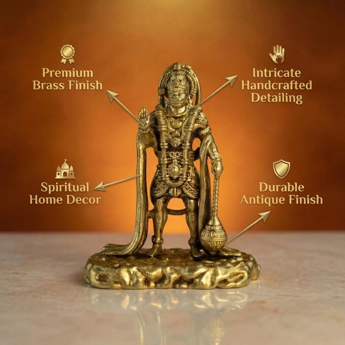 Made from durable premium brass, this compact idol is ideal for daily puja, spiritual rituals, vastu placement, festive decoration, and devotional gifting. Its sturdy base ensures stable placement, while the antique brass finish adds timeless traditional beauty. Lord Hanuman is widely worshipped for removing negativity, granting strength, and protecting the household, making this murti especially suitable for Tuesday puja, Hanuman Jayanti, and regular prayer rituals.
