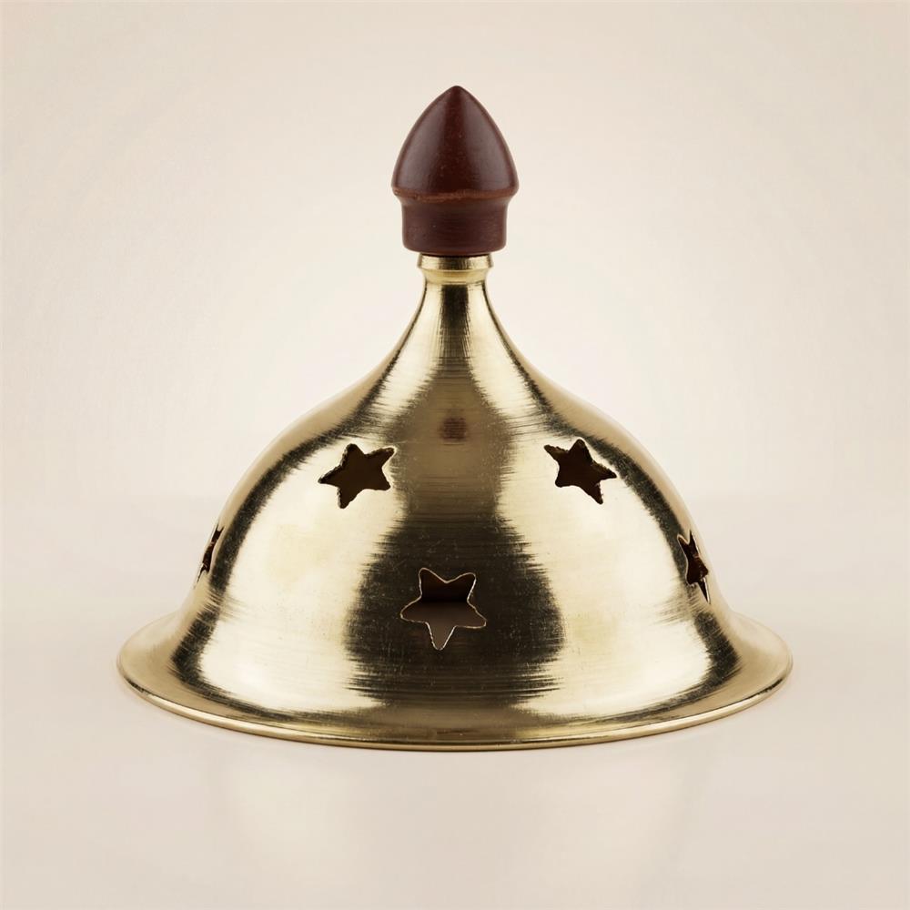 VENTILATED STAR-CUT DOME: The pure brass top dome is elegantly punctuated with star-shaped cutouts, allowing heat and fragrant smoke to dissipate evenly while matching the aesthetic of the crystal base.
