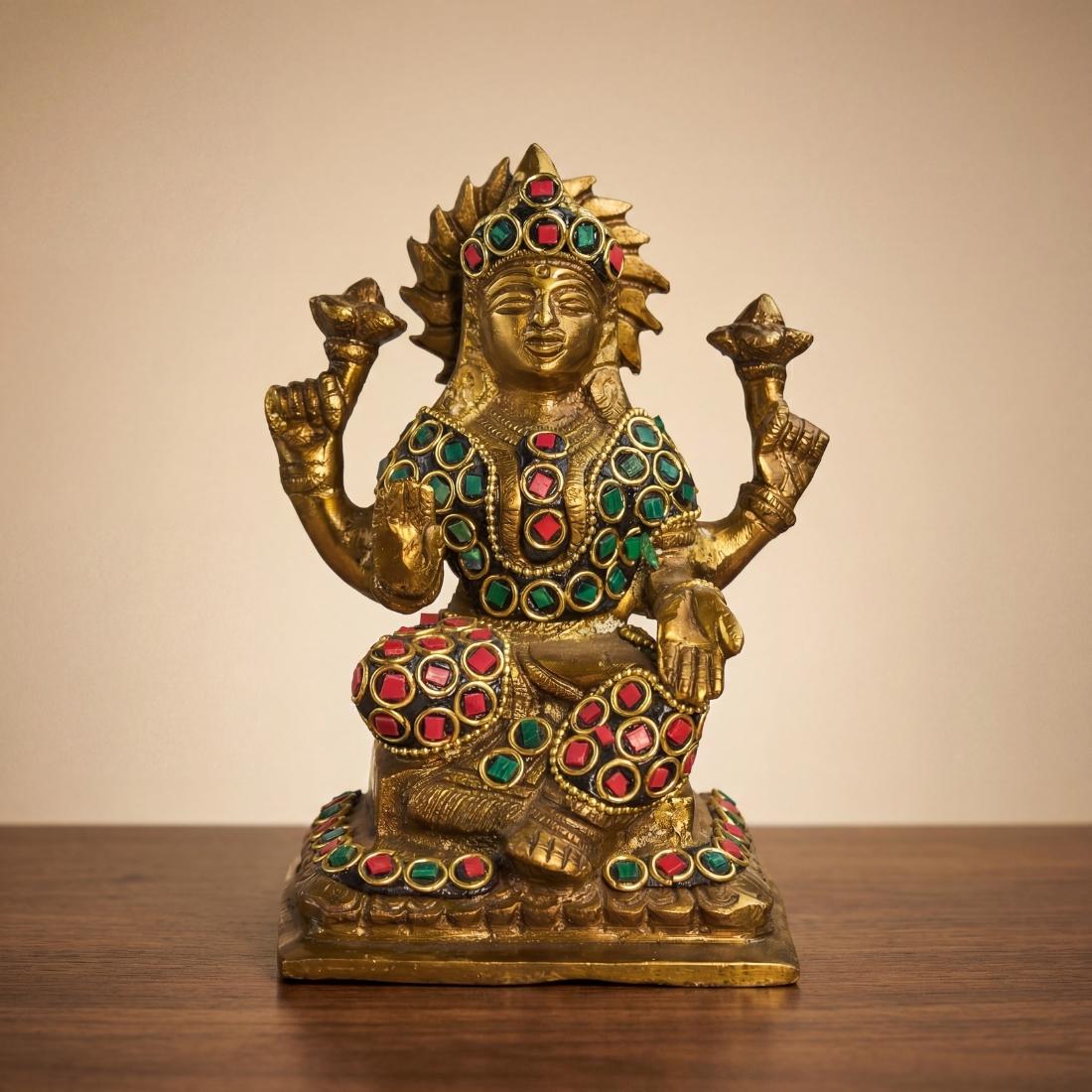 Premium handcrafted pure brass Lakshmi Ganesha idol set with double stone inlay work, ideal for home temple, puja mandir, Diwali decoration, office desk decor, vastu placement, and spiritual gifting.