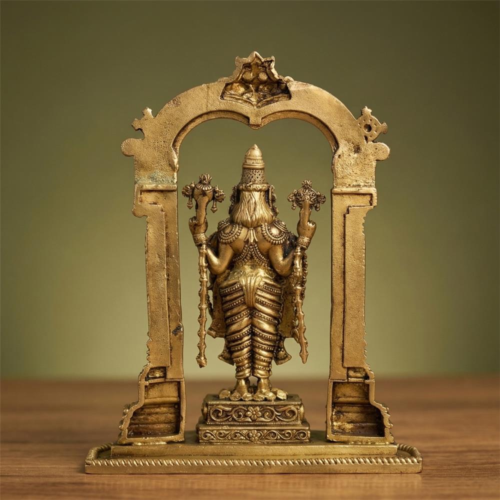 This Pure Brass Lord Balaji Idol is a masterful representation of Lord Venkateswara, designed to bring divine energy and aesthetic elegance to your sacred space. Accompanied by an intricately carved Prabhavali Arch, this idol serves as a centerpiece for spiritual devotion and home decor.