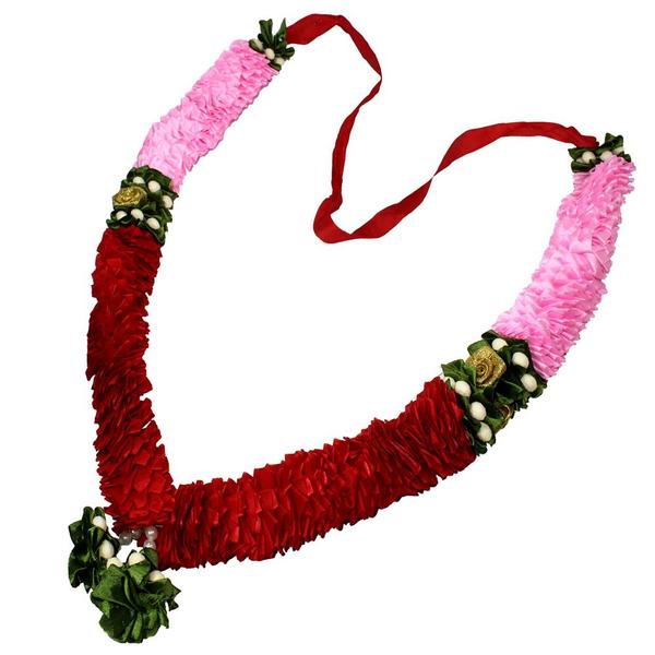 Red & Pink Mala/ Garland with artificial roses- for God/ Idol/ Puja Decor/ Festival/ Photo frame- 52cmX4cmX3cm (Large)