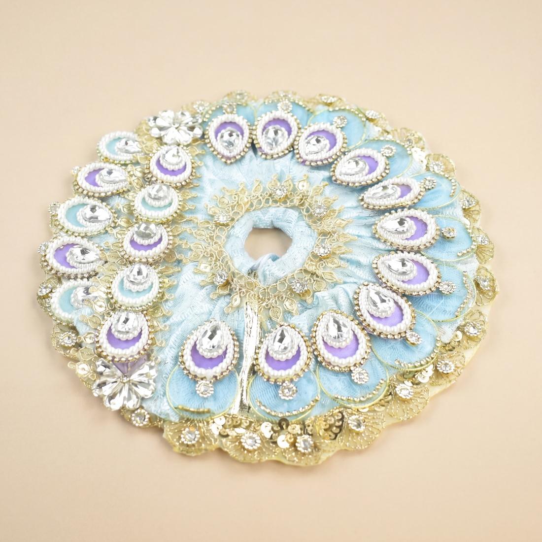 Enhance your deity decoration with this Sky Blue Bal Gopal Dress Set with Mukut, beautifully handcrafted for Laddu Gopal shringar, Janmashtami celebration, daily puja, and temple decoration. This premium set includes a heavy stone work circular dress, matching designer mukut, and coordinated side garment, creating a rich and divine appearance for Bal Gopal idol decoration.