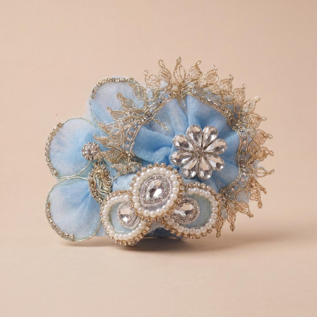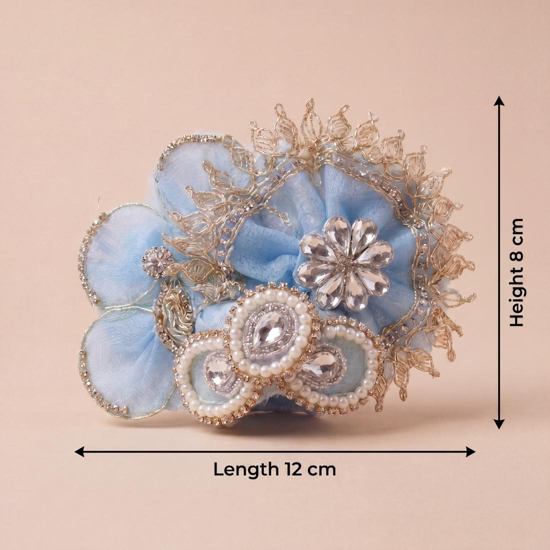 The soothing sky blue color combined with premium embellishment gives a graceful Krishna shringar look, making it ideal for home mandir use, temple rituals, and special festive occasions. The included matching mukut completes the traditional Bal Gopal dressing beautifully.